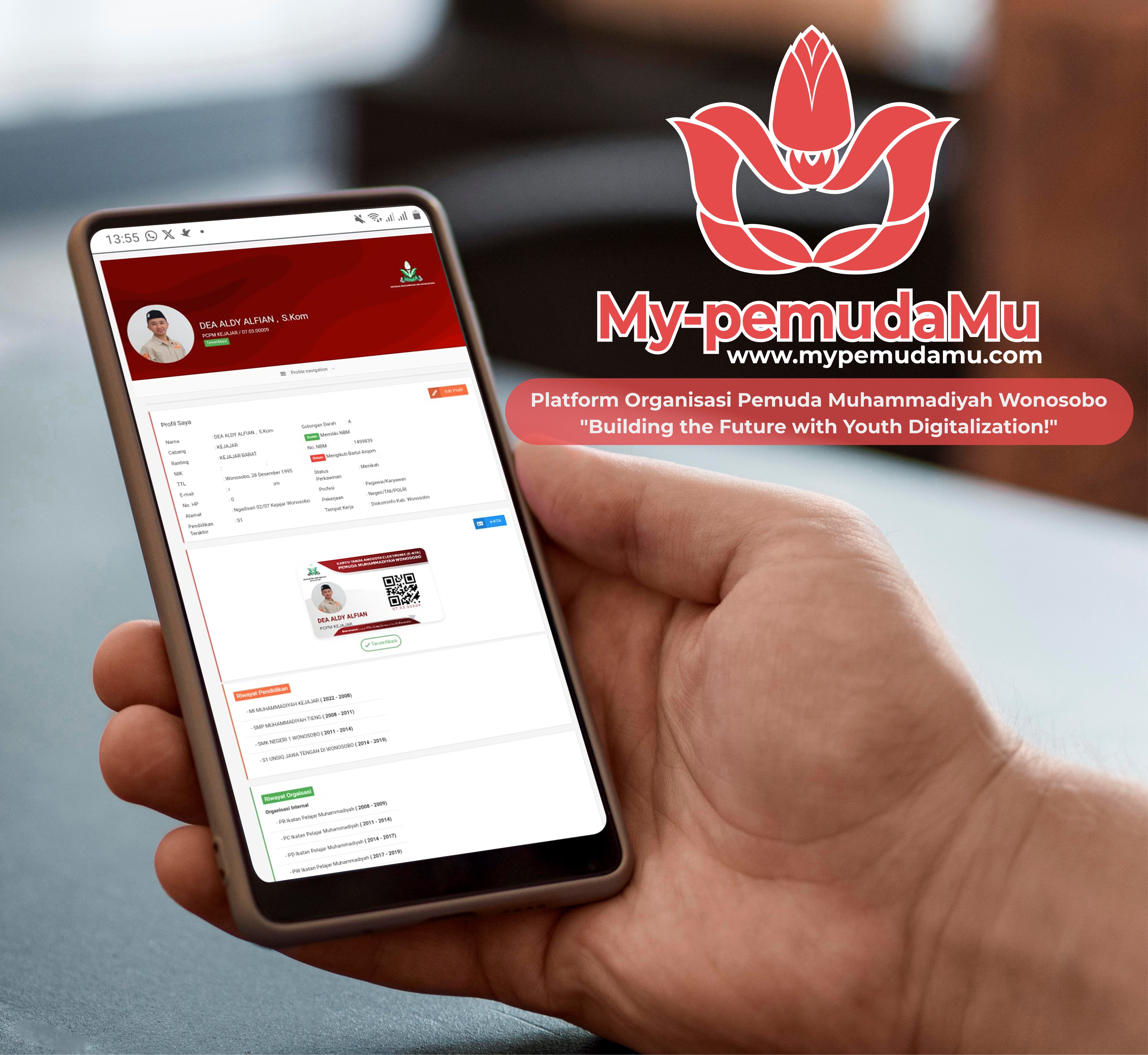 My-pemudaMu adalah platform digital resmi yang dikembangkan oleh Pemuda Muhammadiyah Wonosobo untuk memfasilitasi pendataan anggota, pengelolaan kegiatan, dan administrasi organisasi dari tingkat ranting hingga daerah. Aplikasi ini bertujuan untuk memanfaatkan teknologi Big Data dalam rangka meningkatkan efisiensi dan transparansi organisasi.
